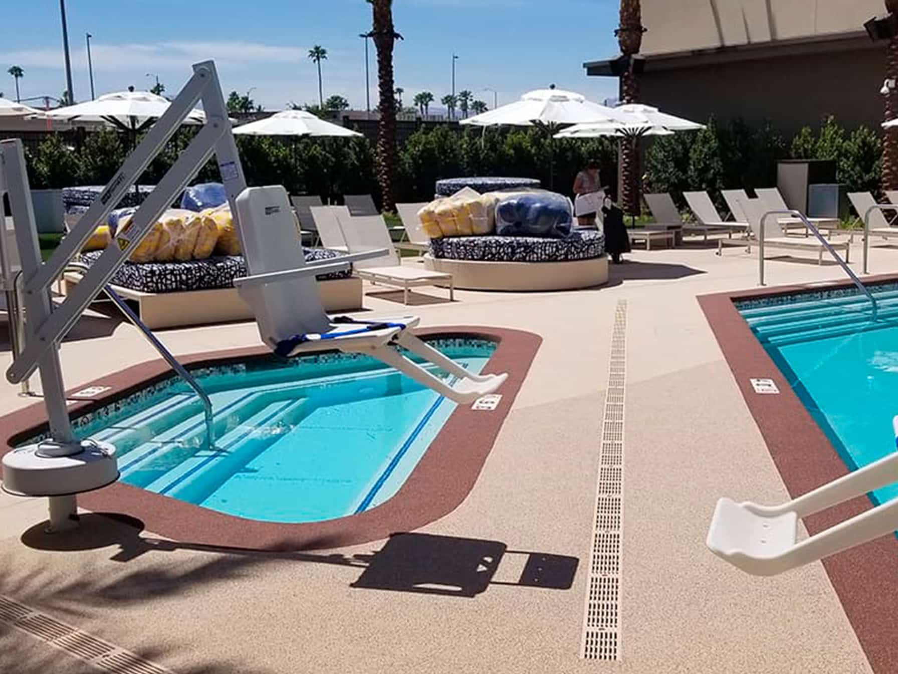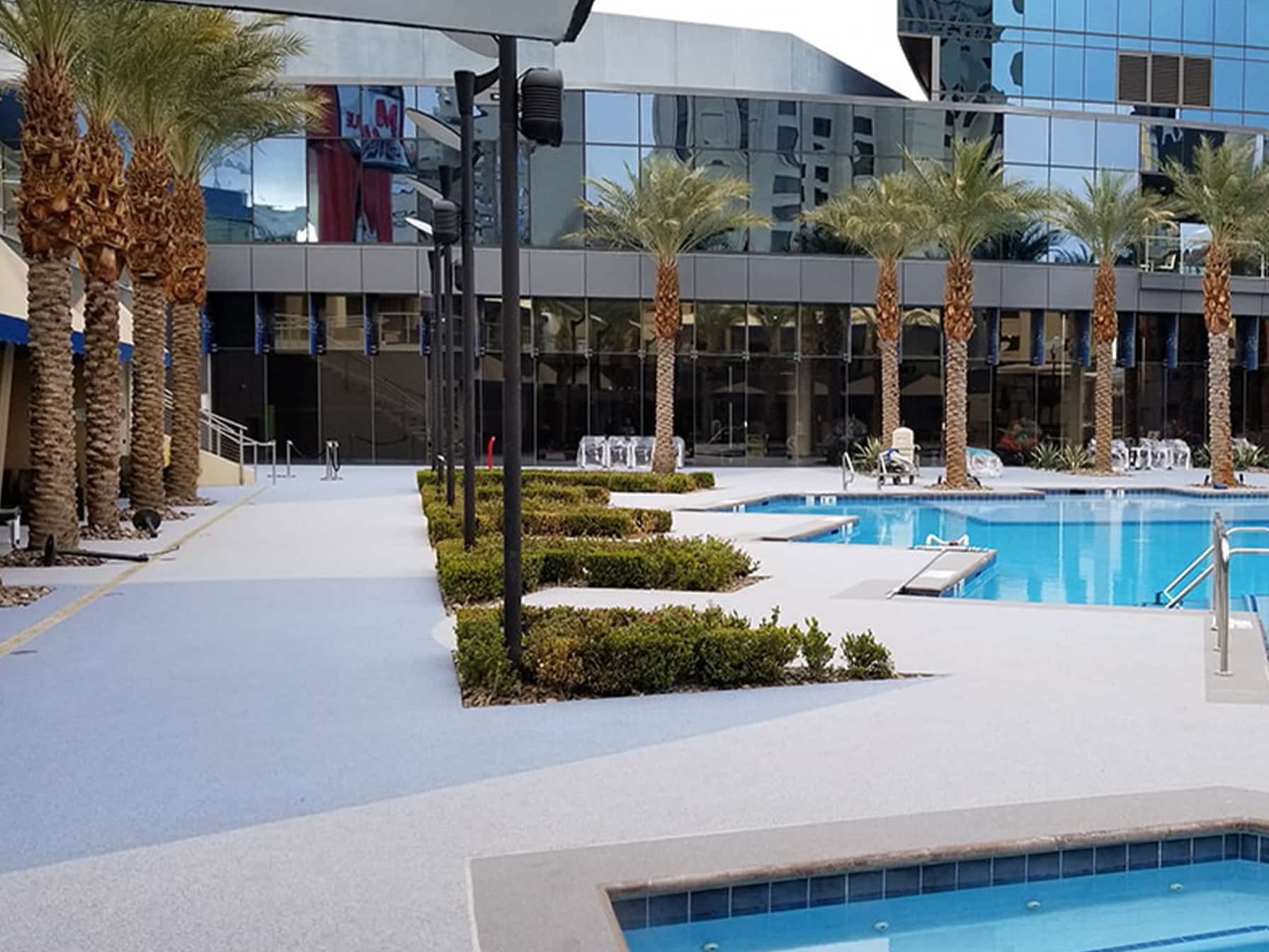 Commercial properties face a multitude of challenges when dealing with their pool decks. Many resorts have the problems of pool deck cracking, customer slips and falls around the pool decks, hot temperatures underfoot, constant painting and resealing of their decks, which significantly affects company annual costs and causes an overall lack of comfort and safety for their guests.
